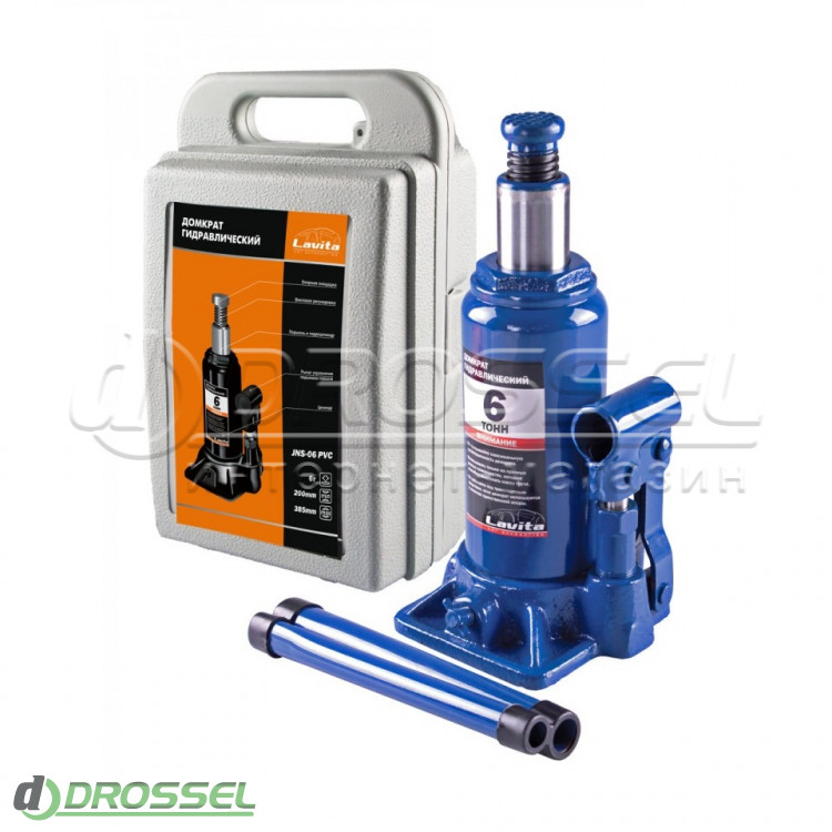 - Гидравлический бутылочный домкрат в пластиковом кейсе Lavita LA JNS-03PVC (3 т)
