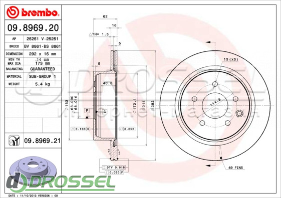 Тормозной диск BREMBO 09.8969.21