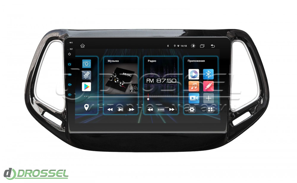 Штатная магнитола Джип Компас отличается большим IPS экраном (10 дюймов, разрешение – 1024х600 пикселей) и звуковым процессором DSP, который позволяет настраивать звук так, как нужно именно вам. Для улучшенного звучания музыки производитель также позаботился о наличии следующий опций: фильтры, Loudness, Smart Bass, временные задержки, 30-полосный графический эквалайзер.