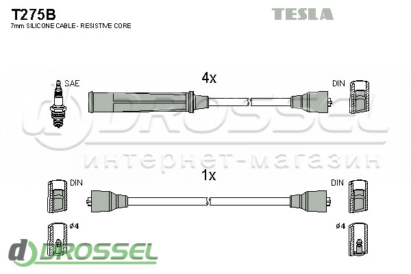 - Комплект высоковольтных проводов зажигания TESLA T070B