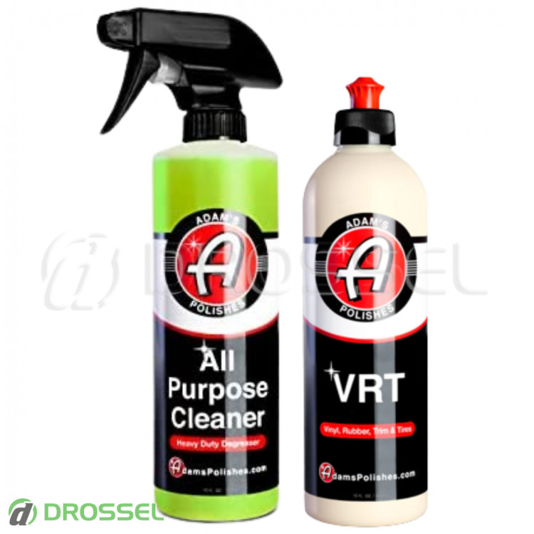 - Комплект для очистки и защиты резины, наружного / внутреннего пластика (очиститель Adam's Polishes All Purpose Cleaner + чернитель Adam's Polishes VRT Tire & Trim Dressing)
