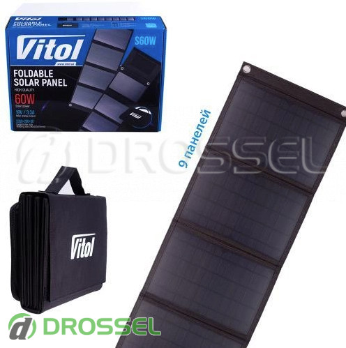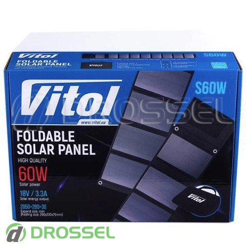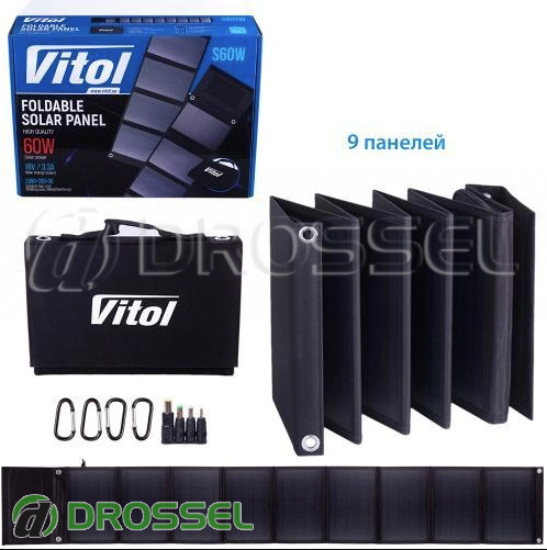 - Складная портативная солнечная панель Vitol S60W (60Вт, 18Вольт, 3.3А)
