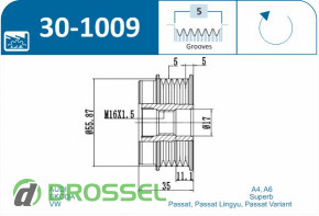 Данную муфту генератора можно с легкостью установить на Audi A4 (B5) 1994-2001, Audi A4 (B6) 2000-2004, Audi A4 (B7) 2004-2008, Audi A6 (C5) 1997-2004, Skoda Superb 1 (B5) 2001-2008, Volkswagen Passat B5 1996-2005.