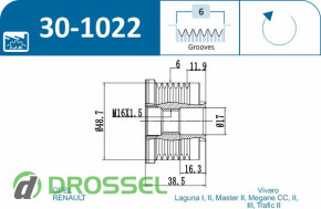 Данную муфту генератора можно с легкостью установить на Mitsubishi Carisma 1995-2004, Mitsubishi Space Star 1 1998-2005, Nissan Interstar 1997-2013, Nissan Primastar 2002-2016, Opel Movano A 1995-2010, Opel Vivaro 1 2001-2014, Renault Fluence 2009-2015, Renault Laguna 2 2001-2007, Renault Laguna 3 2007-2015, Renault Latitude 2010-2015, Renault Master 2 1997-2010, Renault Megane 2 2002-2009, Renault Megane 3 2008-2016, Renault Scenic 3 2009-2016, Renault Trafic 2 2001-2014, Volvo S40 / V40 1996-2004.