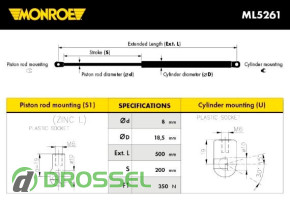 Ключевые характеристики газового упора багажника Монро ML5261: