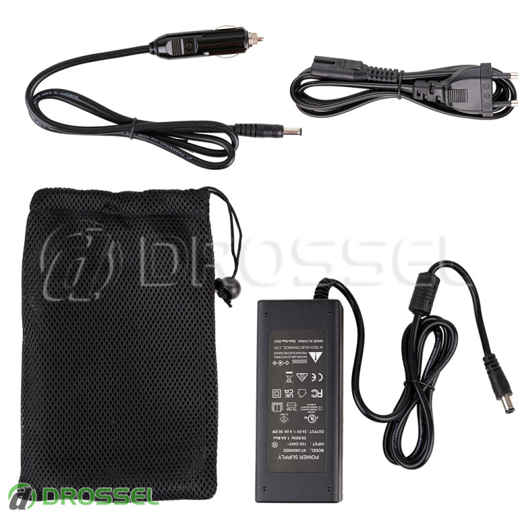 - адаптер переменного тока, автомобильное зарядное устройство, сумка для проводов входят в комплект.