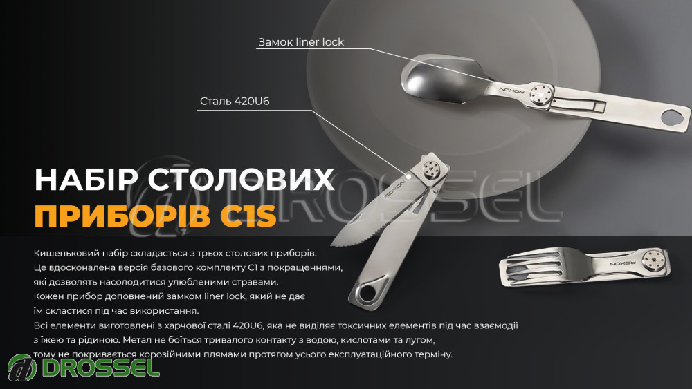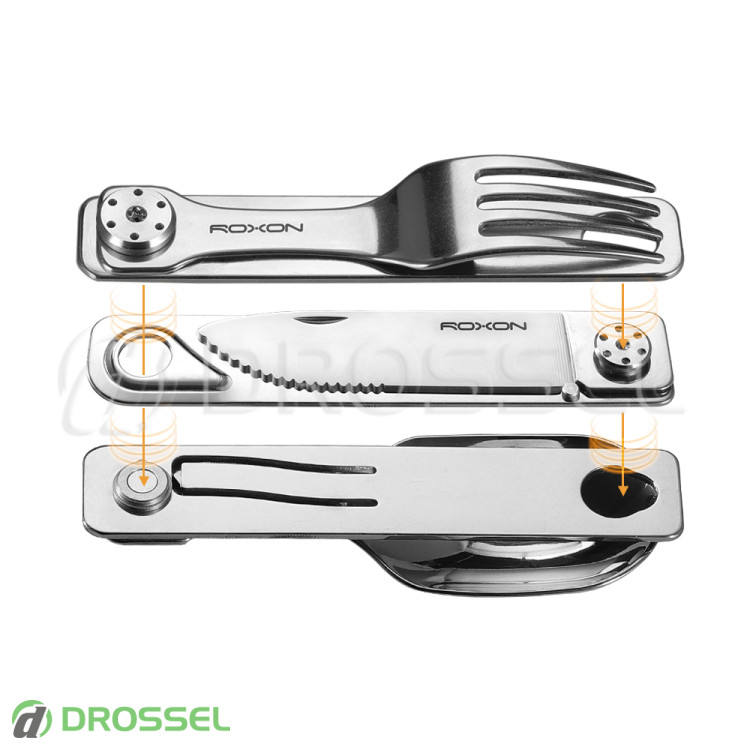 - Туристический набор столовых приборов (ложка, вилка, нож) Roxon C1