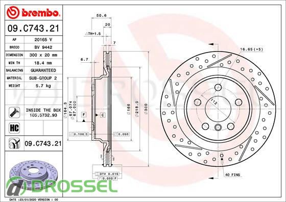 Тормозной диск BREMBO 09.C743.21 на Mini Cooper 3 (F54) (F55) (F56) (F57) 2014+, Countryman (F60) 2017-2023