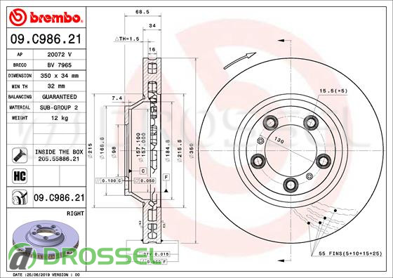 Тормозной диск BREMBO 09.C986.21 на Porsche Cayenne 3 (9Y0) (9Y3) 2017+, Panamera 2 (971) 2016+