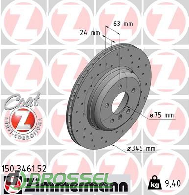 Тормозной диск ZIMMERMANN 150.3461.52 на BMW 5 (E60) (E61) 2003-2010, 6 (E63) (E64) 2003-2010