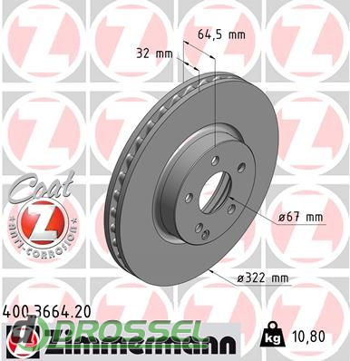 Тормозной диск ZIMMERMANN 400.3664.20 на Mercedes