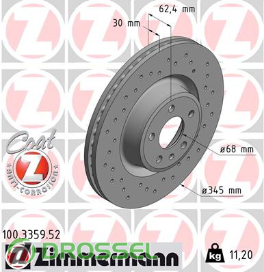 Тормозной диск ZIMMERMANN 100.3359.52 на Audi A6 (C7) 2011-2018