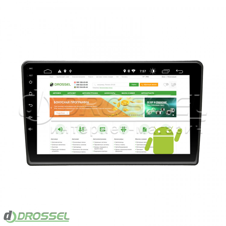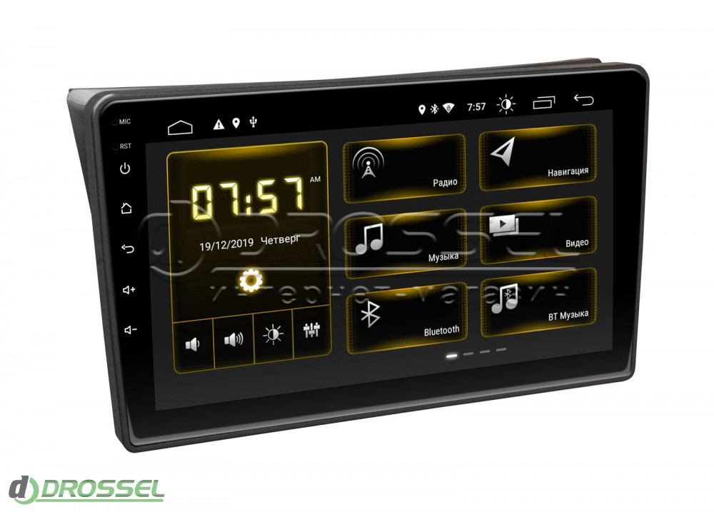 Устройство функционирует на базе 4-ядерного процессора МТК 8227. Размер сенсорного дисплея TFT LCD ( c IPS матрицей, multi-touch) - 9”, разрешение экрана - 1024x600 пикселей.