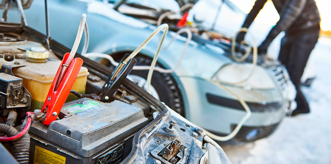 Если у вас не завелась машина в мороз, воспользуйтесь пусковыми проводами, чтобы запустить двигатель от АКБ другого автомобиля.