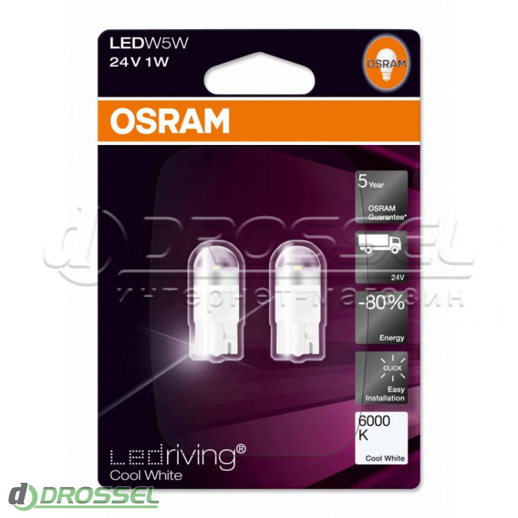 - Комплект світлодіодів Osram LEDriving Premium 2824CW-02B / 2824WW-02B (W5W) 24V