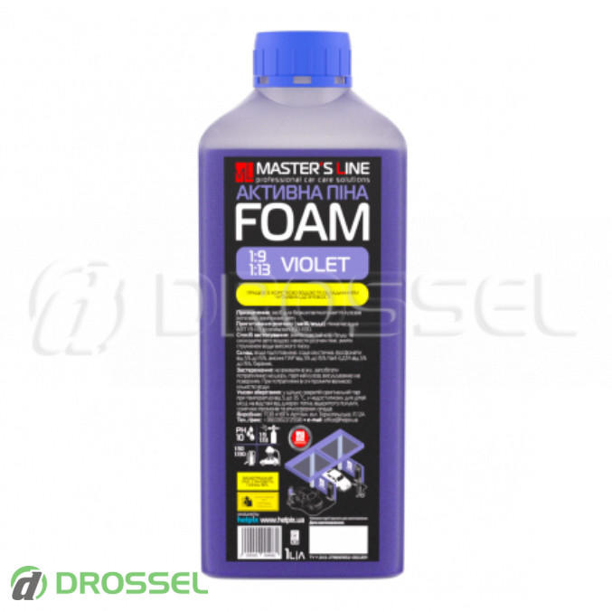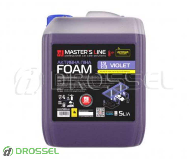 - Активна піна для безконтактної мийки легкових і вантажних автомобілів Master's line Foam 'Violet' 1:9
