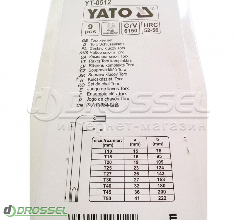 - Набір Г-подібних шестигранників Torx (T10-T50) Yato YT-0512 (9шт)