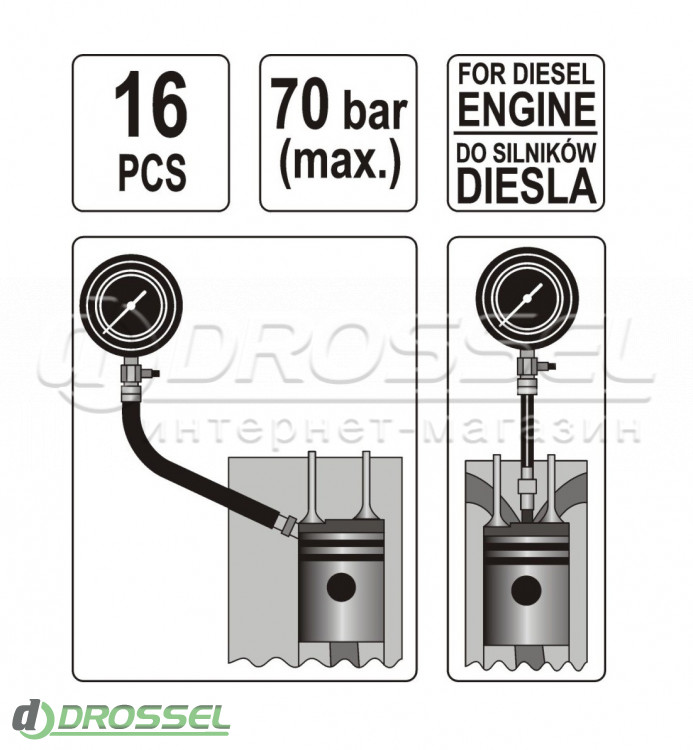 - Компресометр для дизельних двигунів Yato YT-7307 (до 70 бар)
