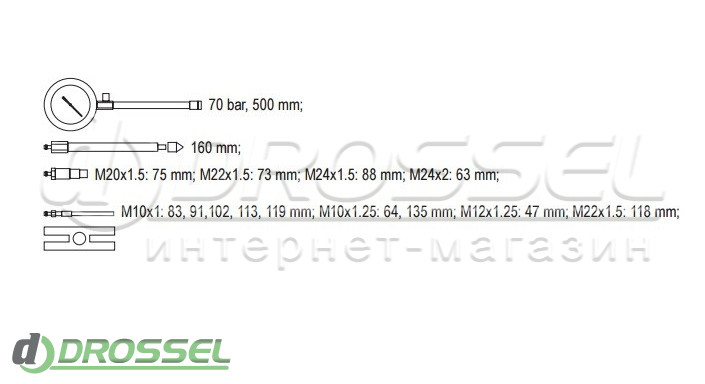 - Адаптерів свічок запалювання M10x1 - 83, 91, 102, 113, 119 мм, M10x1.25 - 64, 135 мм, M12x1.25 - 47 мм, M22x1.5 - 118 мм;