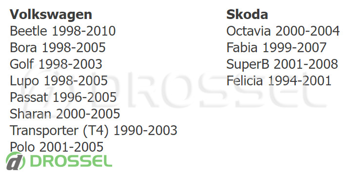 Модель автомобіля | Volkswagen / Skoda (Модели авто смотрите ниже) |
