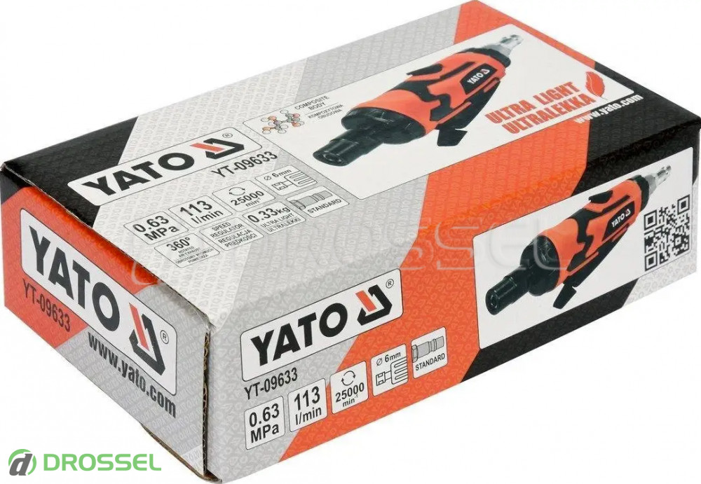 - Пряма пневматична шліфувальна машинка Yato YT-09632