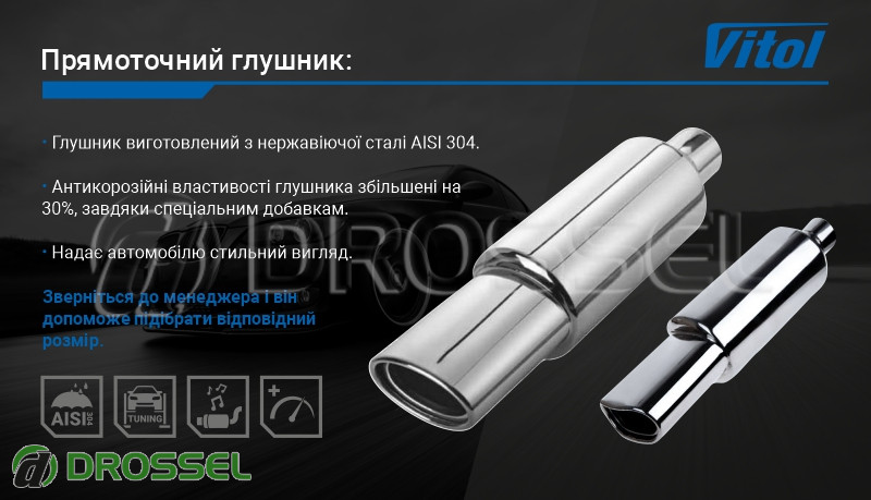 - Прямоток на авто (прямоточний глушник) Vitol НГ-0659