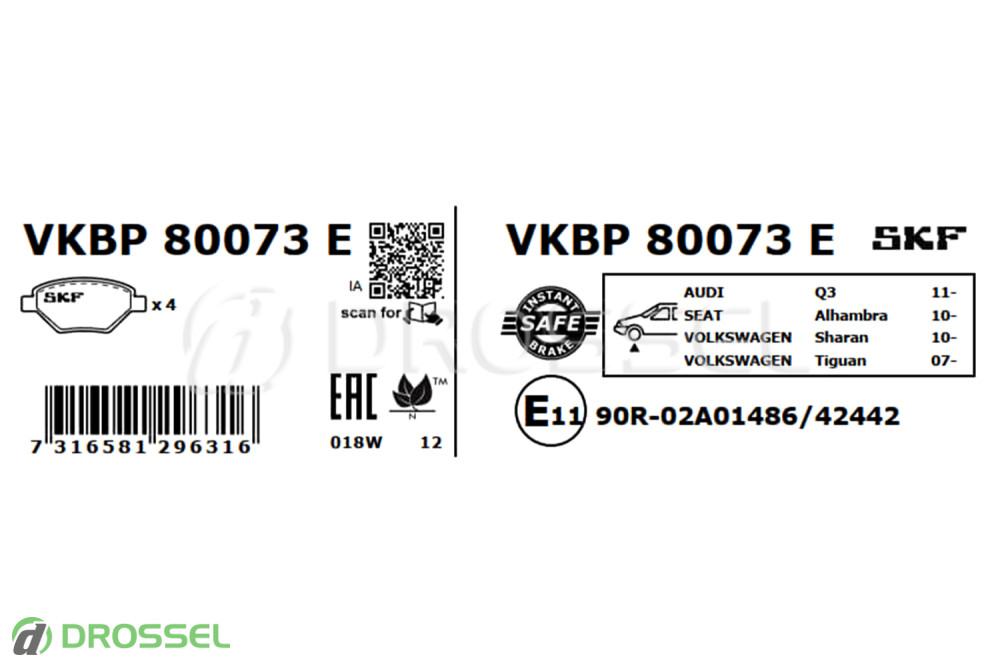 Дані гальмівні колодки можна з легкістю встановити на Audi Q3 (8U) 2011-2018, Seat Alhambra 2 (7N) 2011-2020, Volkswagen Passat B7 2010-2015, Volkswagen Passat NMS B7 / B8 USA 2011-2019, Volkswagen Sharan 2 2010-2022, Volkswagen Tiguan 1 2007-2016.