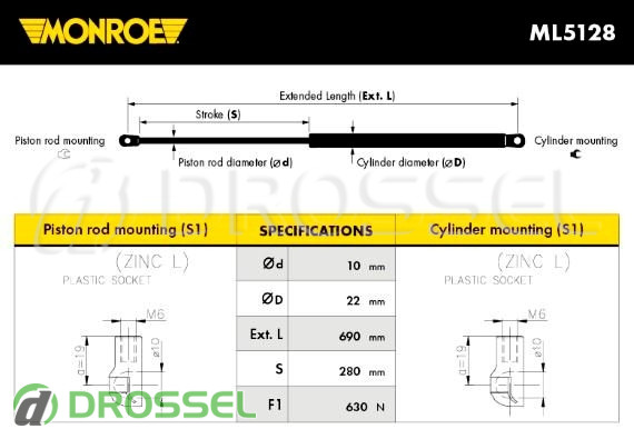 Ключові характеристики газового упору багажника Монро ML5128: