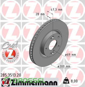 Диск гальмівний ZIMMERMANN 285.3513.20 на Hyundai KIA
