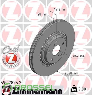 Диск гальмівний ZIMMERMANN 590.2825.20 на Lexus Toyota