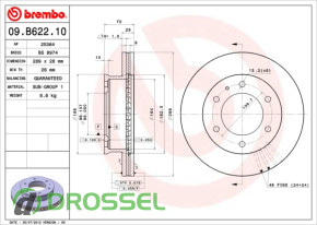 Диск гальмівний BREMBO 09.B622.10 на Ford Ranger 1998-2012 и Mazda BT-50 (UN) 2006-2011