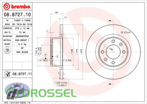 Диск гальмівний BREMBO 08.8727.10 на Citroen C5 1 (2001-2008), C5 2 (2008-2017)
