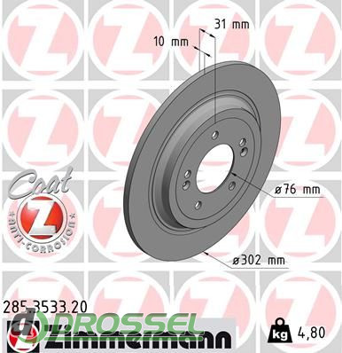 Диск гальмівний ZIMMERMANN 285.3533.20 на Hyundai KIA