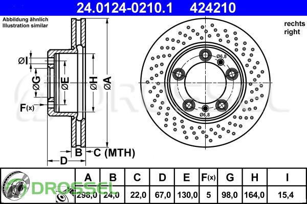 Диск гальмівний ATE 24.0124-0210.1 на Porsche Boxter (987) 2005-2012, Cayman (987) 2005-2012