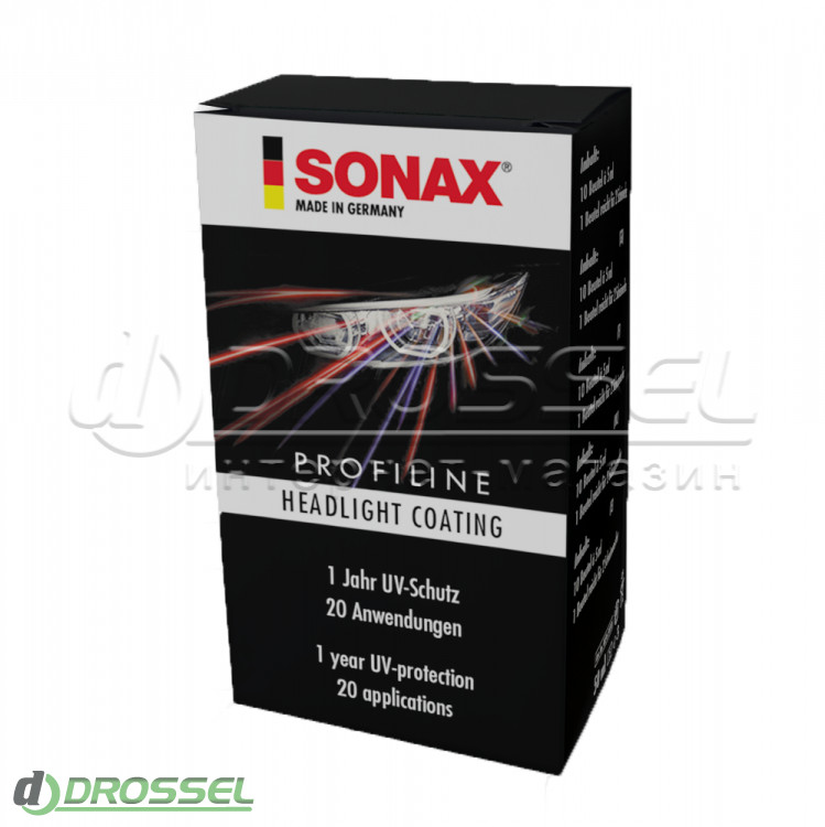 Захисне покриття Sonax ProfiLine Headlight Coating UV-filter 276541 має унікальну формулу, яка містить спеціальні активні речовини. Їх роль - відображення ультрафіолетових променів і блокування їх негативного впливу на пластикові поверхні. Крім цього, препарат забезпечує довготривалий захист фар від впливу навколишнього середовища.