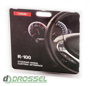 Carav R-100 - адаптер для підключення штатних кнопок на кермі для керування автомагнітолою. Інтерфейс Carav R-100 дозволяє підключити до мультикерма більшості автомобілів з аналоговою (резистивною) системою керування (Hyundai, Alfa Romeo, BMW, Subaru, Lexus, Mazda, Mitsubishi, Nissan, Opel, Jaguar, KIA, Suzuki, Toyota, VW, Chevrolet, Honda, Infiniti, Citroen, Fiat, Land Rover, Peugeot, Ssang Yong, Ford і ін.), практично, будь-який головний пристрій. Керування магнітолою здійснюється через ІЧ-порт, або через зовнішній вхід (міні-джек). За допомогою адаптера Carav R-100 можна "навчити" (програмування здійснюється за допомогою пульта дистанційного керування) кнопки на кермі на коротке або на довге натискання для повноцінного керування.