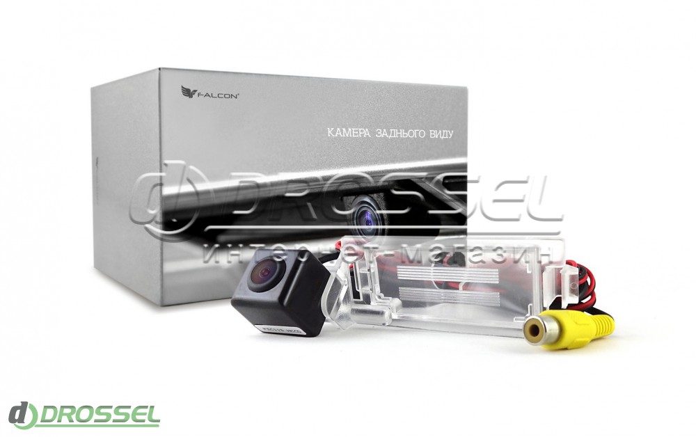 Штатна кольорова камера заднього виду Falcon SC64 HCCD-170 з матрицею покращеної чутливості HCCD для Dodge Caliber 2011, призначена для установки в штатне місце освітлювального плафона номерного знака.
