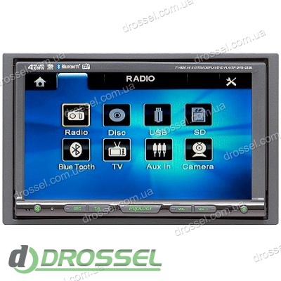 Мультимедійний центр з вбудованим DVD-програвачем і РК-монітором PROLOGY DVS-2135. Зручність як в дорозі, так і під час тривалих зупинок забезпечить мультимедійний центр від PROLOGY. Знайомтеся: PROLOGY DVS-2135 - мультимедійний центр з вбудованим DVD-програвачем і РК-монітором. Мультимедійний центр PROLOGY DVS-2135 має широкоформатний кольоровий екран з системою кольоровості PAL/SECAM/NTSC. Вбудований DVD-програвач сумісний з форматами: DVD, DivX, VCD, CD, JPEG. Таким чином, ви можете переглядати відео на екрані діагоналлю 7 "(178 мм) на сучасному форматі 16: 9. Також в PROLOGY DVS-2135 є високошвидкісний цифровий PLL тюнер з пам'яттю в 24 станції і можливістю запису найбільш потужних станцій в пам'ять. Завдяки опції RDS-EON, ви можете отримувати дані від допоміжної радіохвилі. Передбачено еквалайзер для регулювання параметрів звуку. Мультимедійний центр PROLOGY DVS-2135 має монтажний розмір: 2DIN, слот для карт пам'яті SD і USB інтерфейс. А також оснащений 4-канальним аудіовиходом RCA і лінійним RCA виходом на сабвуфер . Монтажний набір і пульт дистанційного керування - поставляються в комплекті.