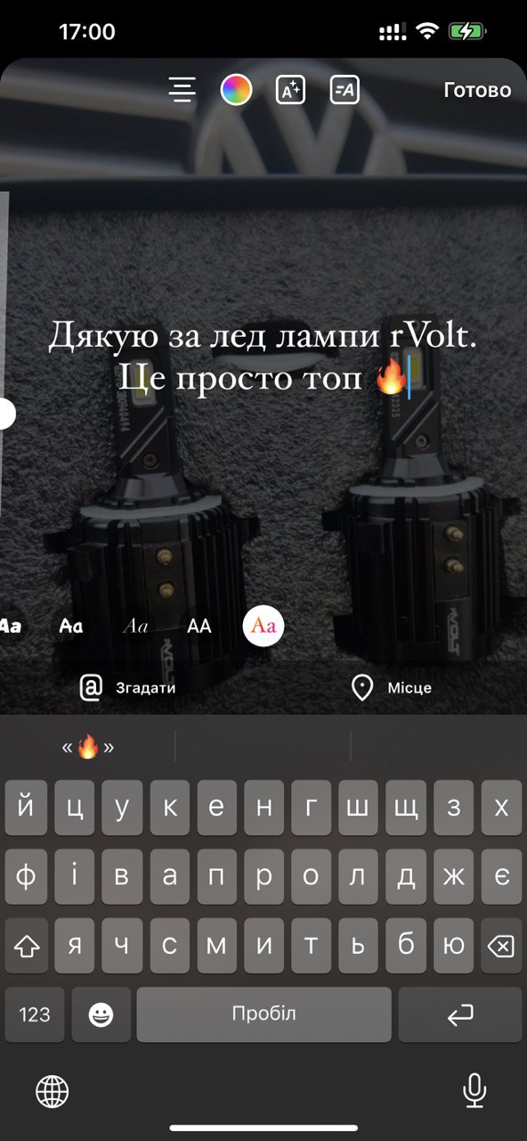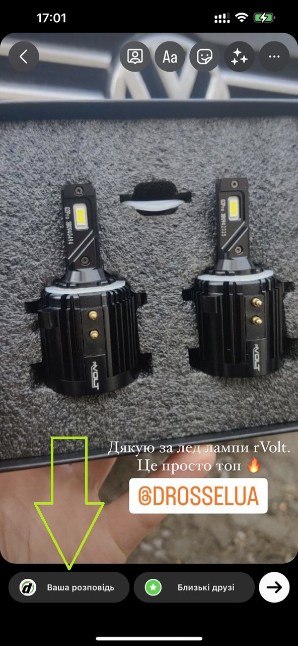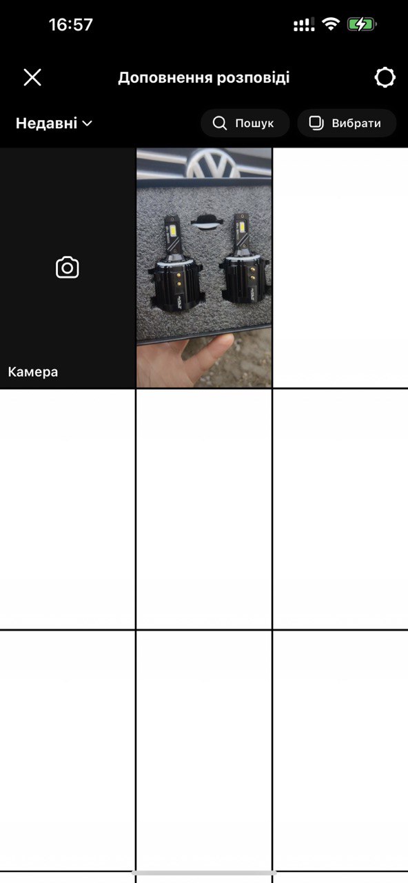 3. Відкриється меню з медіагалереєю вашого телефону. Оберіть фото або відео, яким ви хочете поділитися у сторіс (ми покажемо на прикладі фото led ламп rVolt):