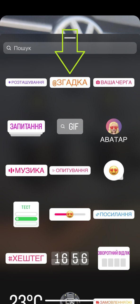 5. З'явиться меню з різними віджетами, тут потрібно вибрати функцію "Згадка":