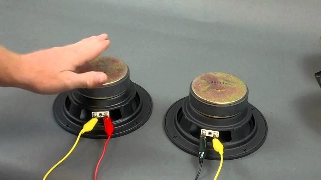 - Приєднайте інший кінець дроту до сабвуфера. При цьому важливо правильно підключити полярність, щоб уникнути спотворень звуку.